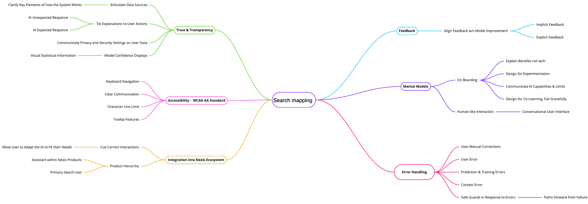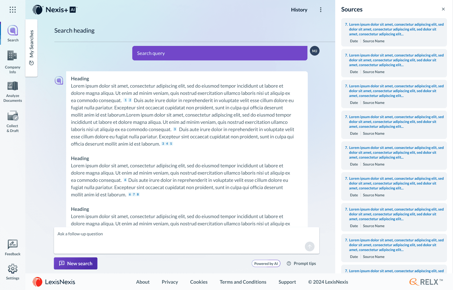 Search is the brains behind the product. Its relationship with the wider ecosystem is integral to the success and growth of Nexis+AI. Poor navigation and an unclear way of moving through the ecosystem, via search, would lead to a insufficient experience with multiple points of friction.